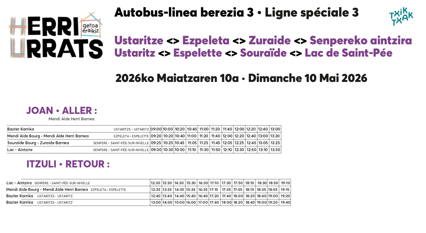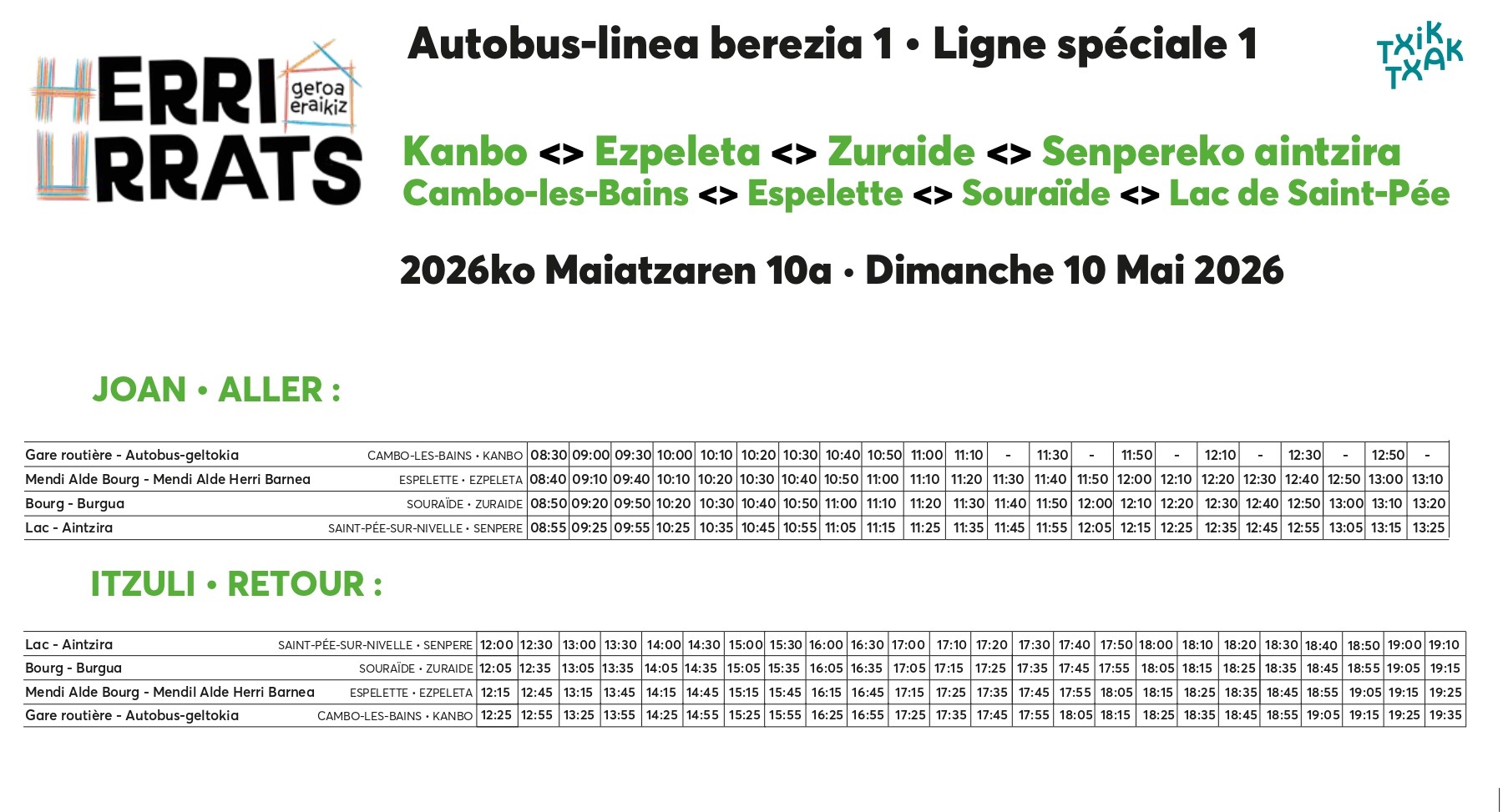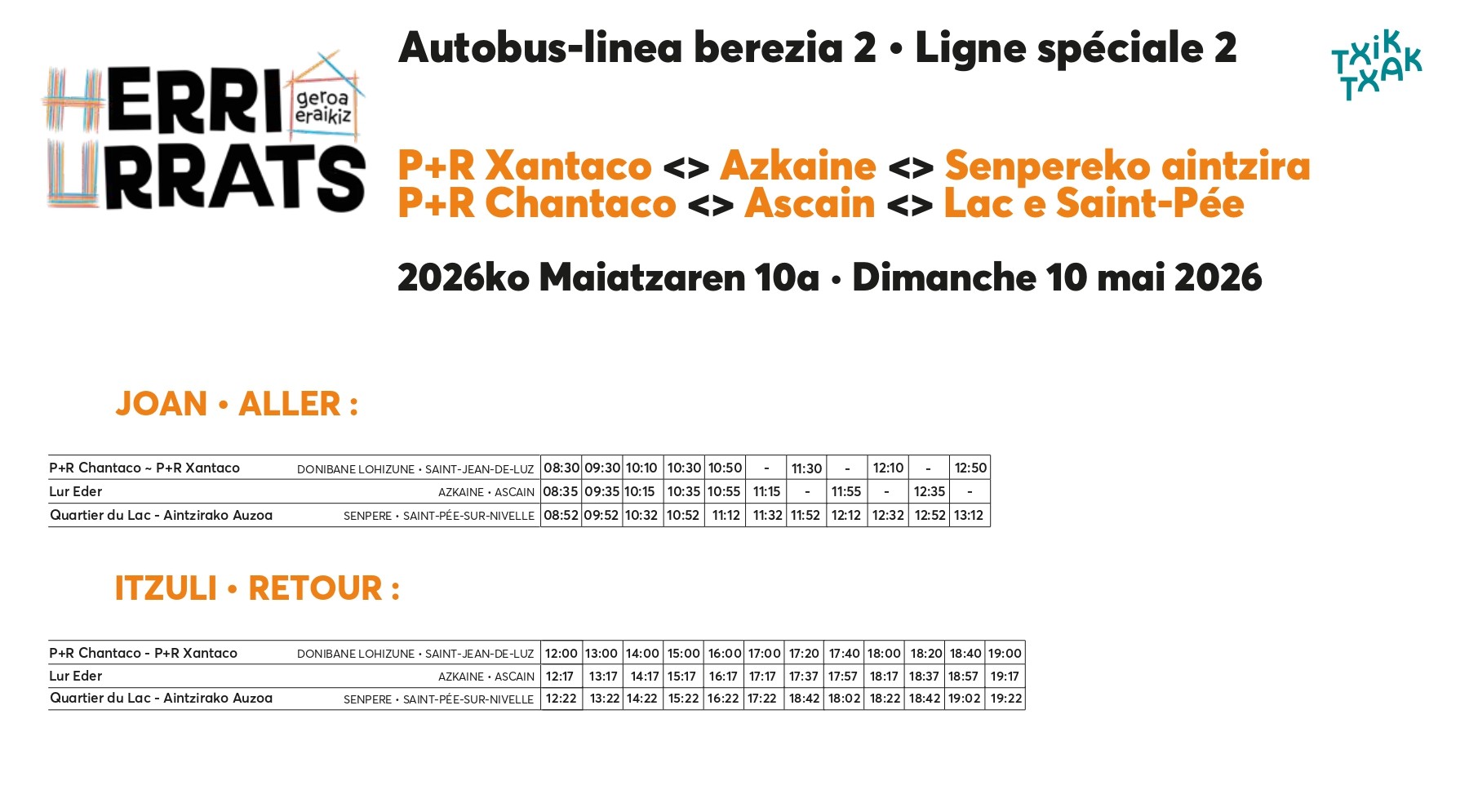 Salgai dira TXIK TXAk-ekin elkarlanean antolatutako autobusetarako txartelak. Aintzinetik erosteko aukera egonen da eta egunean bertan (maiatzak 10) GELTOKI GUZTIETAN ere.